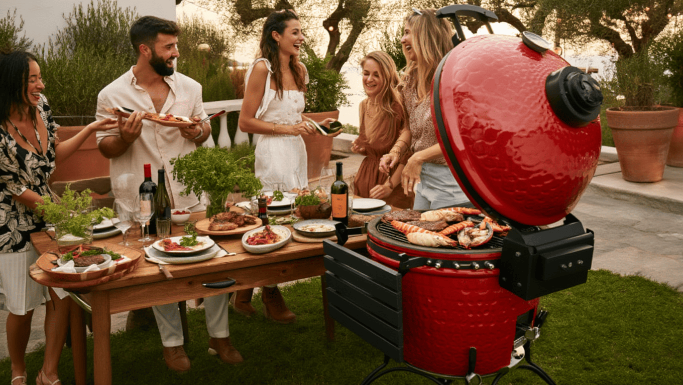 Керамические грили DinoEgg — угольные камадо-модели с характерной чешуйчатой структурой корпуса, которая не только придает им узнаваемый драконий вид, но и усиливает прочность керамики. Эти грили предназначены для 6–8 персон, с диаметром решетки 46 см, и поставляются в комплекте с мобильной тележкой на колесах, подстольем и боковыми столиками. Фарфоровая эмаль в черном, зеленом или красном цвете защищает поверхность, а общий вес 85–90 кг обеспечивает устойчивость при габаритах 116 × 82 × 125 см.